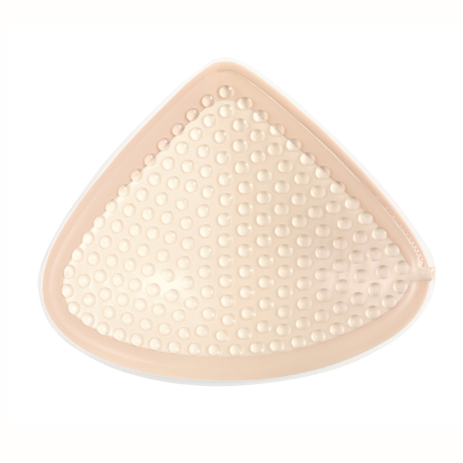Desuden er denne protese temperaturregulerende og tilføjer eller afgiver varme til huden under protesen, så den altid er behagelig at have på. Derfor er denne brystprotese særlig god til dig, som er meget aktiv eller har problemer med ryggen.