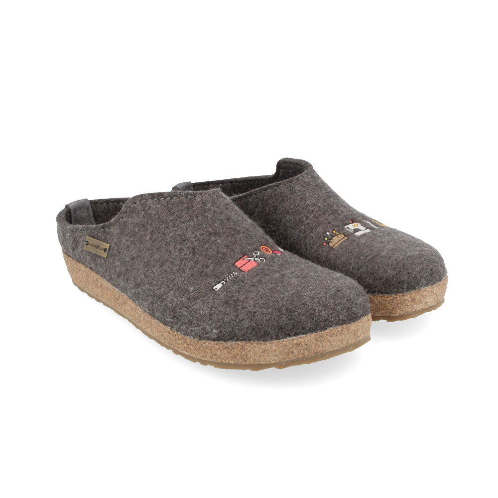 Mørkegrå hjemmesko i 100% uld og med et fint broderet motiv