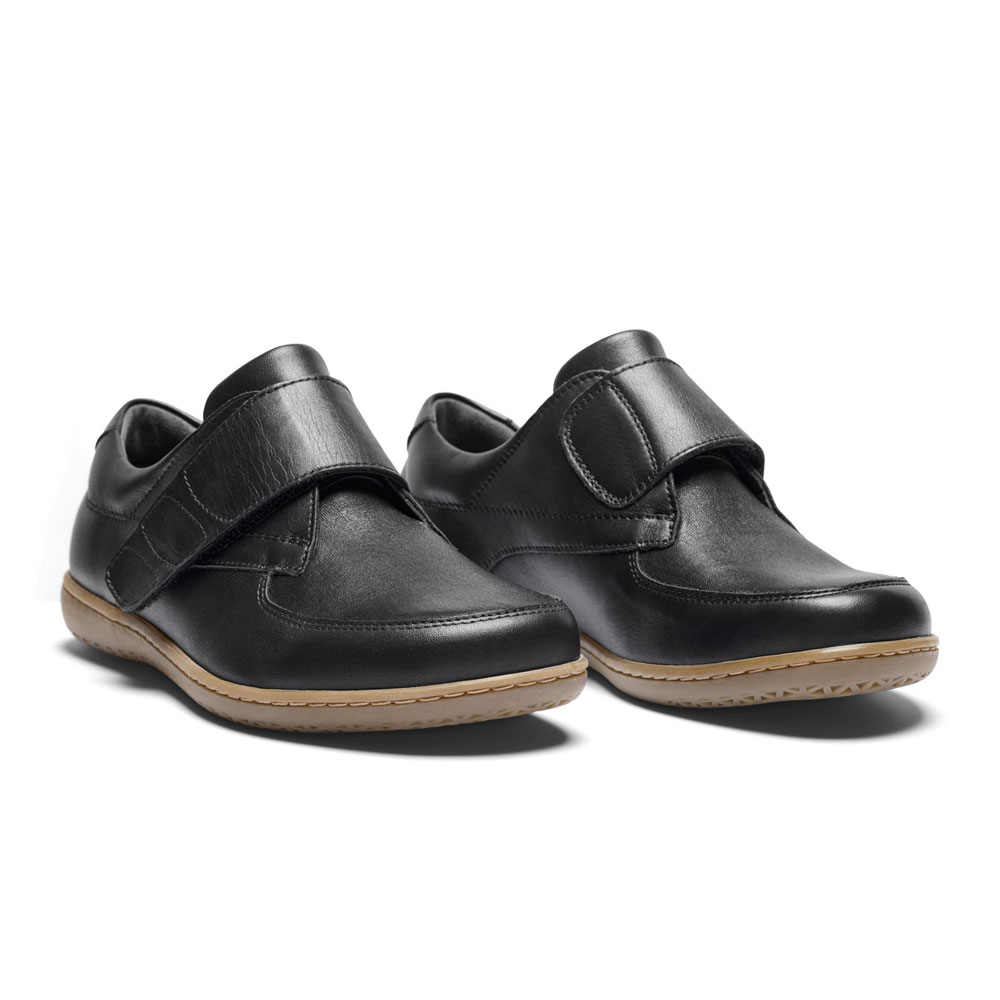 Den faste hælkap holder foden i en korrekt stilling. Der er god plads i skoen, hvilket gør den særligt velegnet at anvende med specialfremstillede indlægssåler.