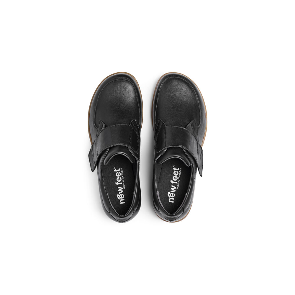 Sko fra New Feet er lavet med masser af kærlighed til følsomme fødder. Ekstra god plads til tæerne, en stabil hælkappe og ingen generende syninger. Skoene er udviklet til at kunne klare forskellige tilretninger; hælforhøjelse, kiler, indlæg m.m.