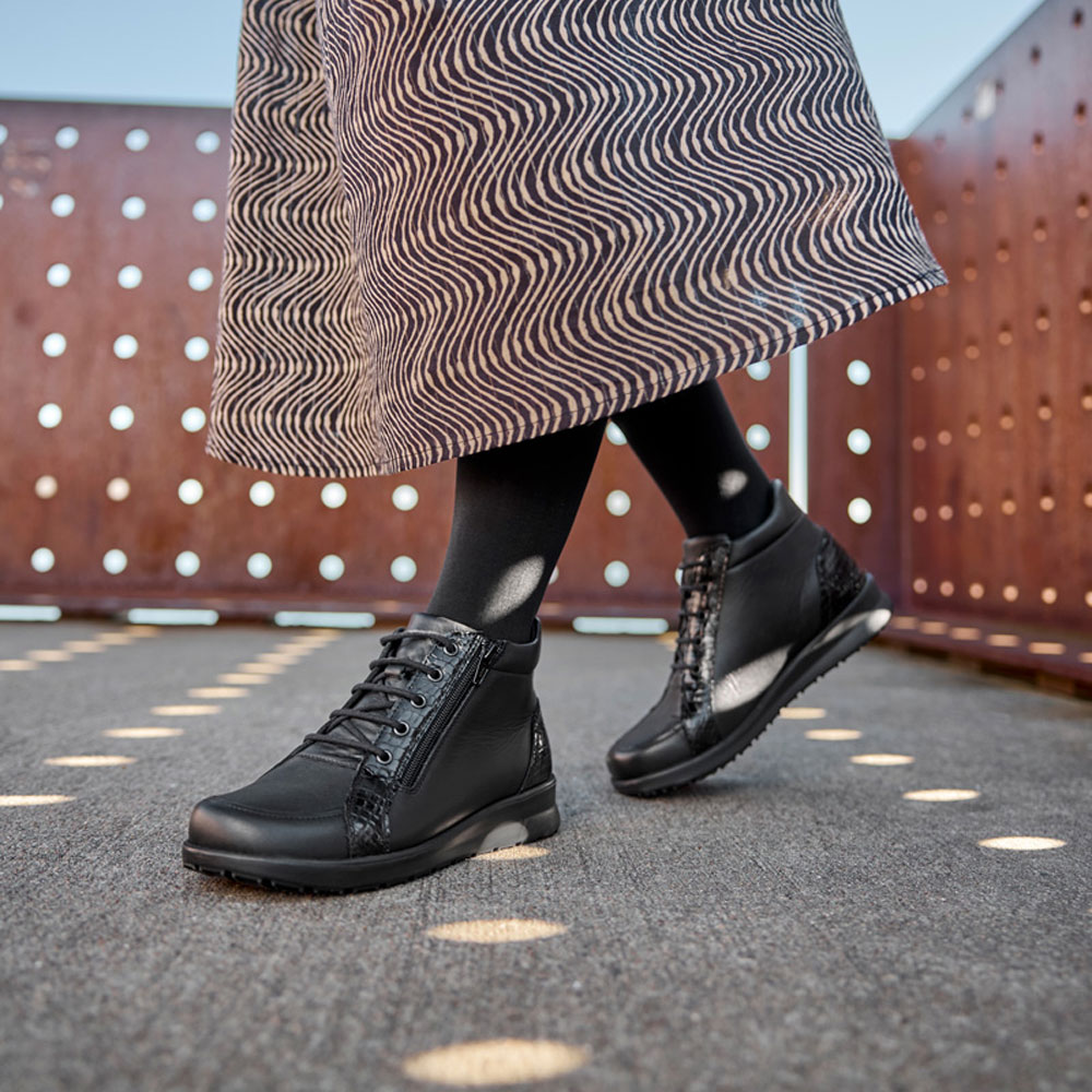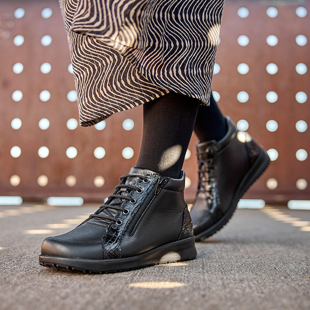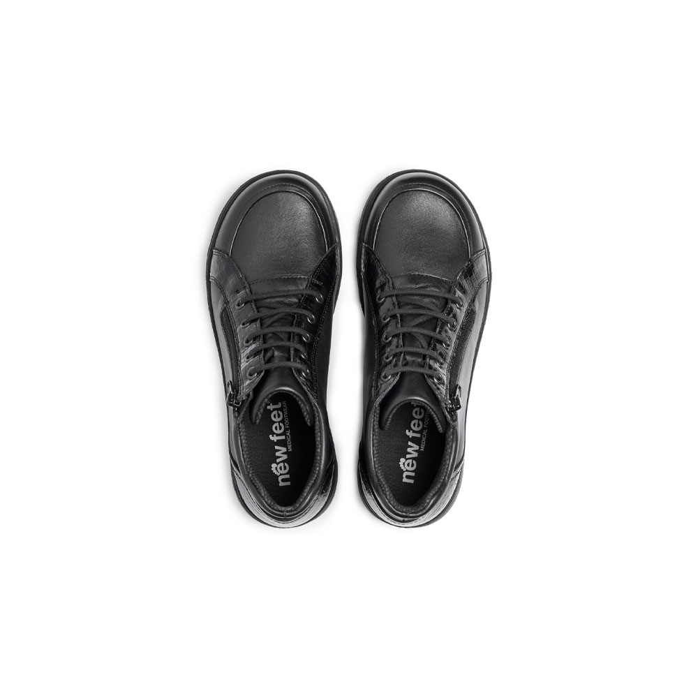 Fodtøj fra New Feet er lavet med masser af kærlighed til følsomme fødder. Ekstra god plads til tæerne, en stabil hælkappe og ingen generende syninger. Fodtøjet er udviklet til at kunne klare forskellige tilretninger, hælforhøjelse, kiler, indlæg mm.